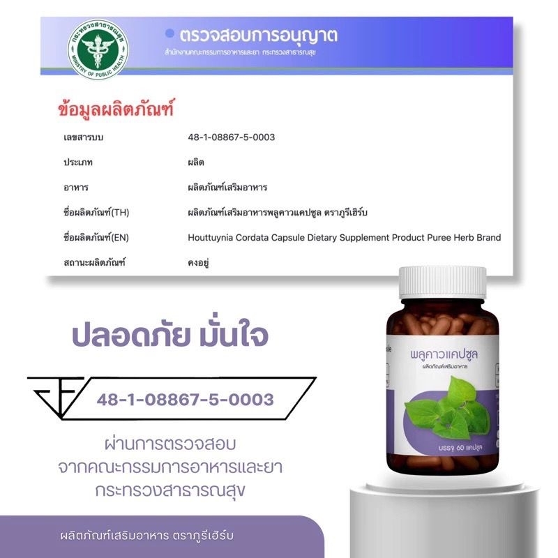 พลูคาวแคปซูล ตราภูรีเฮิร์บ 60 แคปซูล - ปัญหาผิวหนัง (ขายดี)