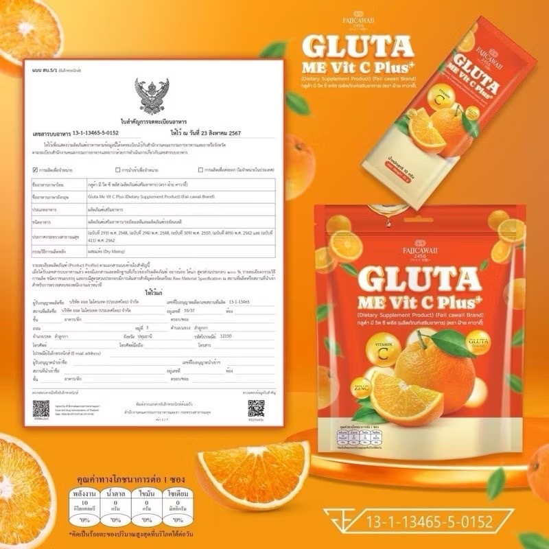 ซื้อ 1แถม 1By Faiicawaii Gluta Me Vit C Plus + red c multi vitamins กลูต้าวิตมินซีส้ม + เรดซีคอลลาเจน 2 ห่อ 60ซอง