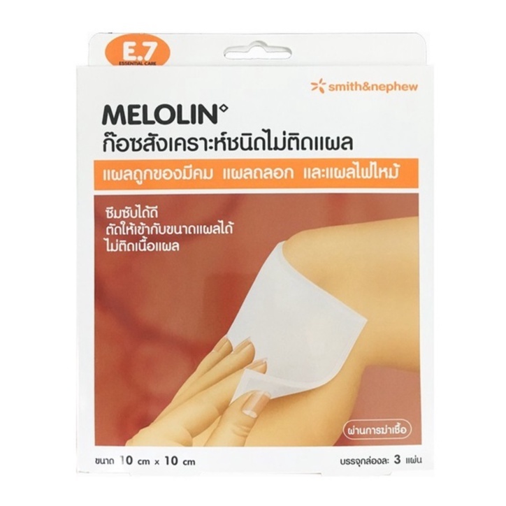 Melolin Smith & Nephew แผ่นปิดป้องกันแผล ดูดซับของเหลว ไม่ติดแผล Cushioned Dressing Pads กล่อง 3ชิ้น