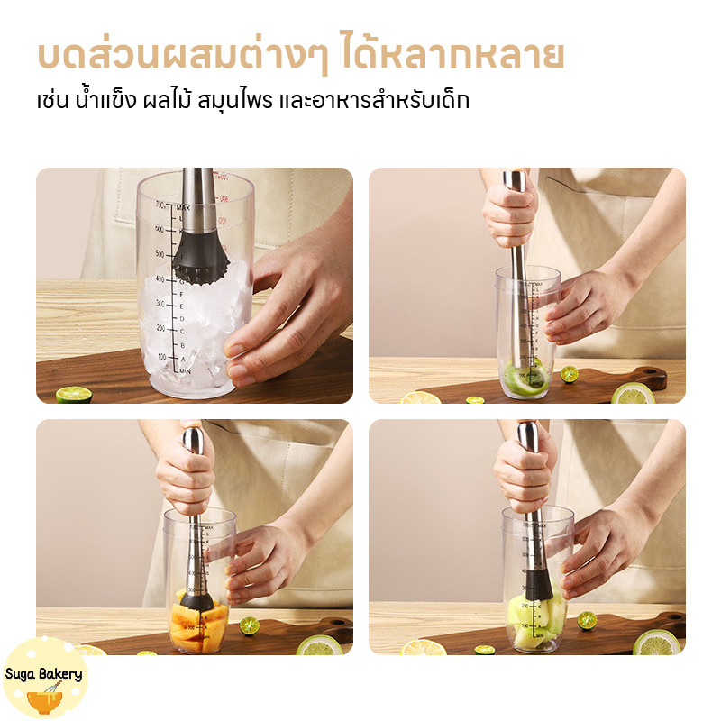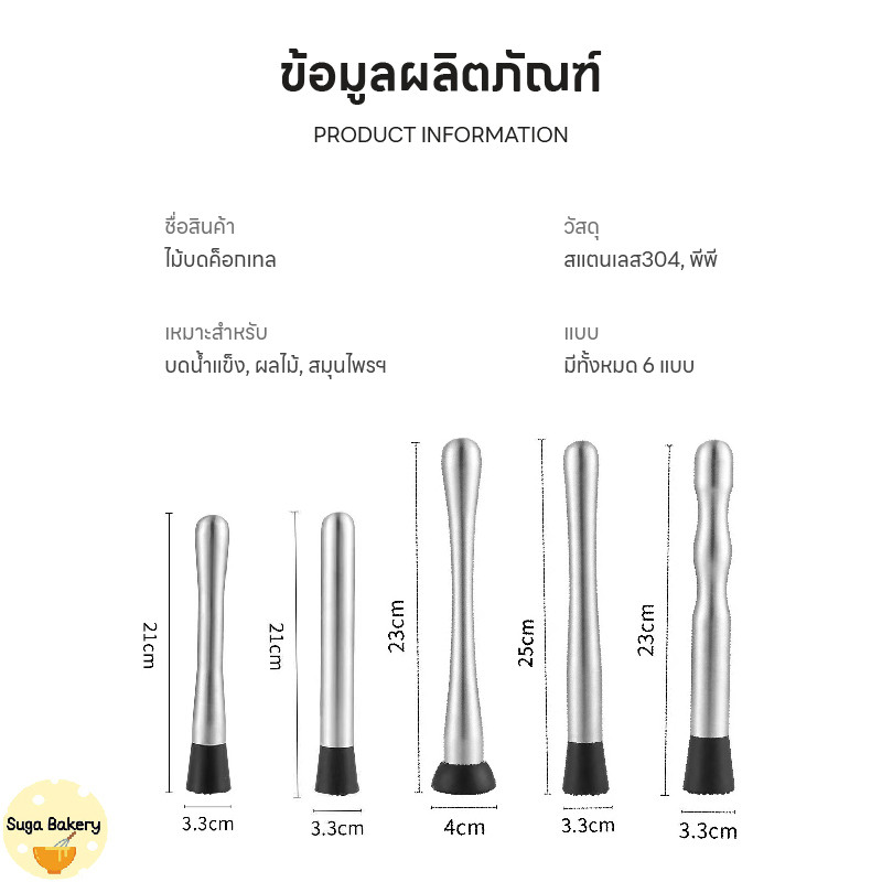 SUGA พร้อมส่ง ไม้บดค็อกเทล สแตนเลสแท้ ที่บดน้ำแข็ง อุปกรณ์บาร์เทนเดอร์ ไม้ตำมะนาว แท่งบดผลไม้ COD SUR340