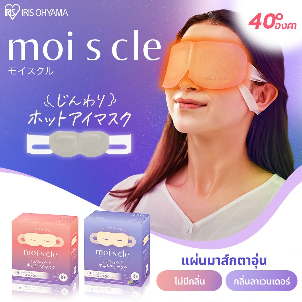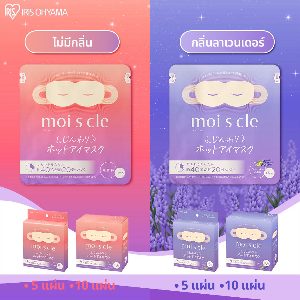 IRIS OHYAMA ไอริส โอยามะ Moiscle Moist Heating Eye Mask แผ่นมาส์กตาอุ่น แบบไม่มีกลิ่นและกลิ่นลาเวนเดอร์ กล่อง5/10แผ่น