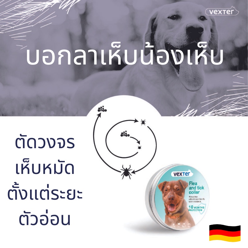 (ร้านค้าไทยส่งเร็วมาก) Vexter ปลอกคอกันเห็บหมัดสำหรับน้องหมาใช้ได้นาน 10 เดือนนำเข้าจากประเทศเยอรมัน