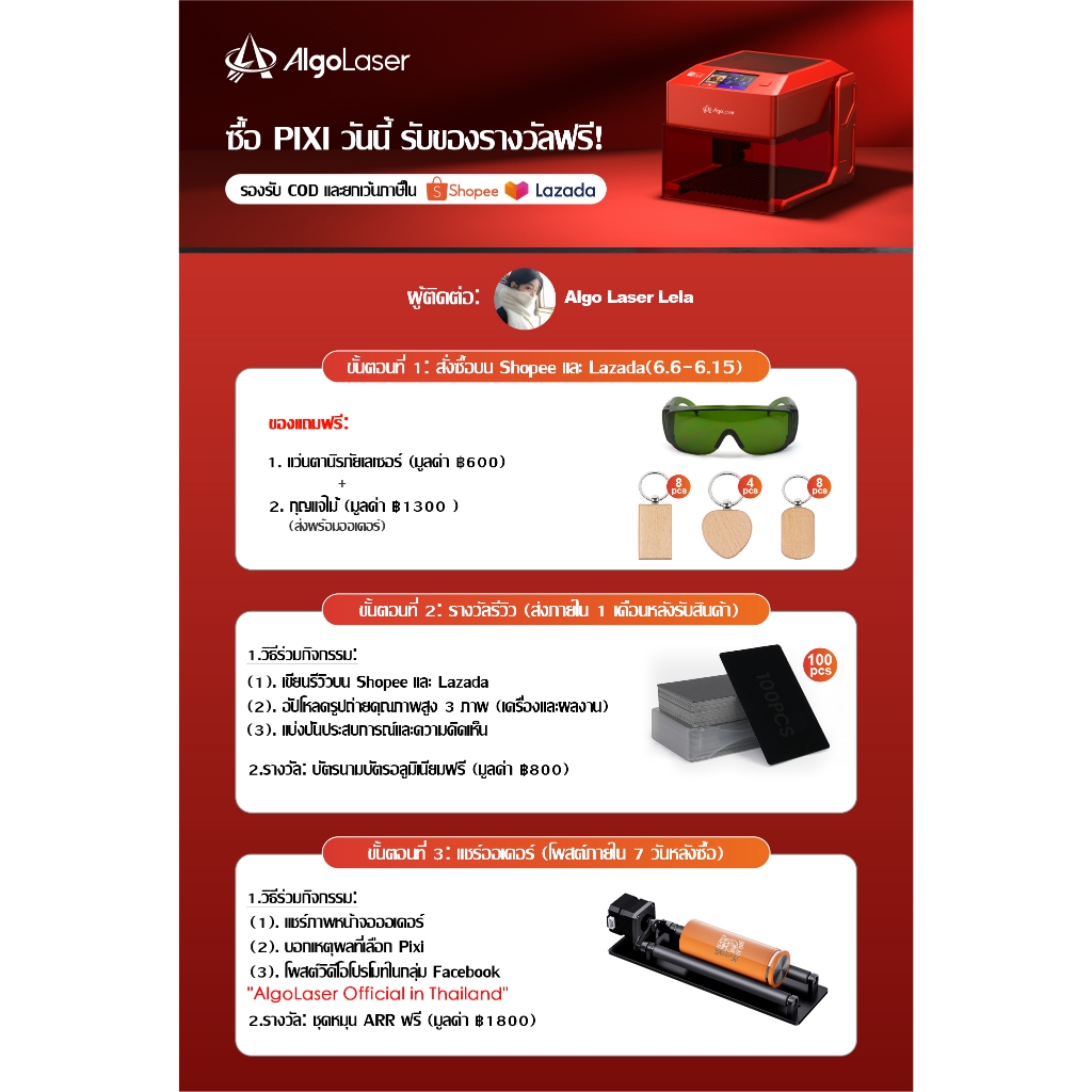 Algolaser PIXIเครื่องแกะสลักเลเซอร์ สำหรับหนัง เครื่องตัดไม้ เครื่องตัดเดสก์ท็อปแบบพกพาLaserEngraver
