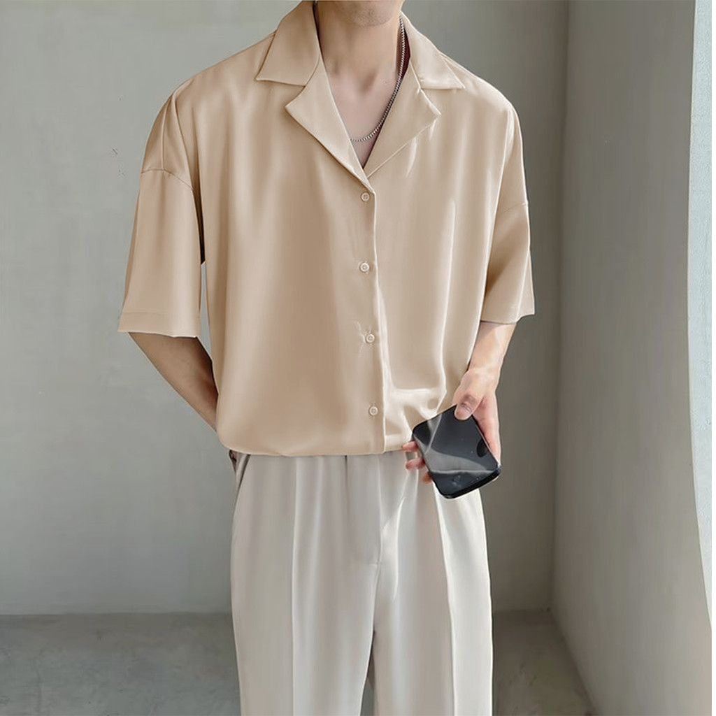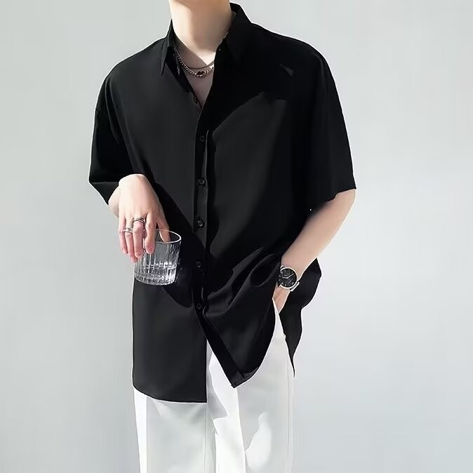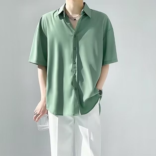 เสื้อเชิ้ตผู้ชายสีพื้นผ้านิ่มใส่สบายไม่ต้องรีด เสื้อเชิ้ตเกาหลีผู้ชาย