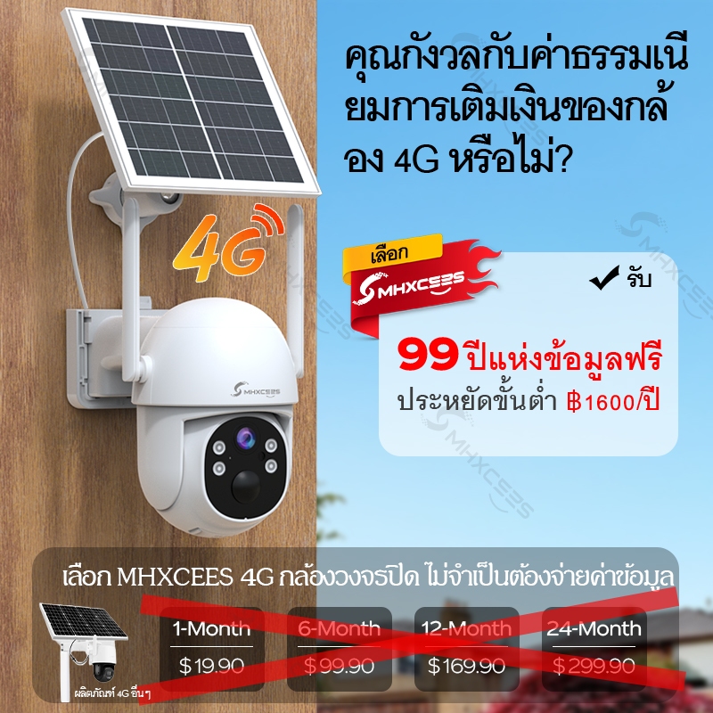 MHXCEES กล้องวงจรปิดไร้สาย 4G พลังงานแสงอาทิตย์+เน็ตฟรี 99 ปี,2K กล้อง 360° (ไม่ต้องเติมเงิน) Tuya