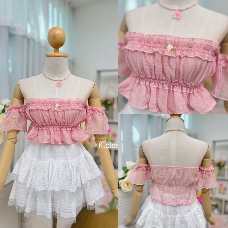 Sweetie Top(สาวอวบใส่ได้อกถึง 45)เสื้อปาดไหล่หวานละมุน ผ้า Rossy ❌ผ้าบาง❌เสื้อผ้าผู้หญิง