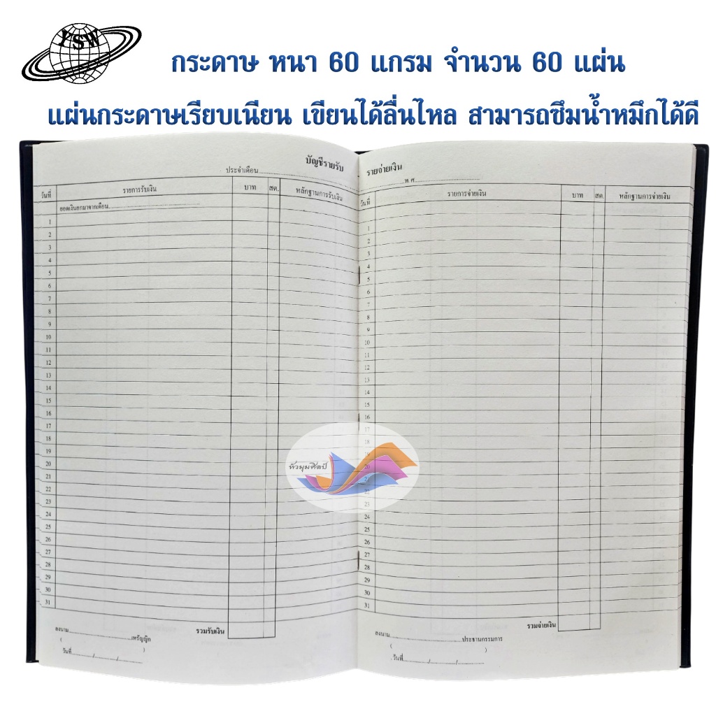 สมุดบัญชีรายรับ-รายจ่าย บัญชีรายรับรายจ่าย ปกเคลือบPVC สีน้ำเงิน หนา 60 แกรม ขนาด 21.5 x 33.5 ซม.