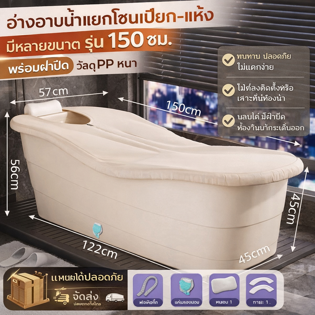 อ่างอาบน้ำพลาสติกขนาดใหญ่ สำหรับผู้ใหญ่ แช่ตัวเต็มตัว หนาพิเศษ ใช้ในบ้าน มีหลายขนาด 120/130/140/150cm