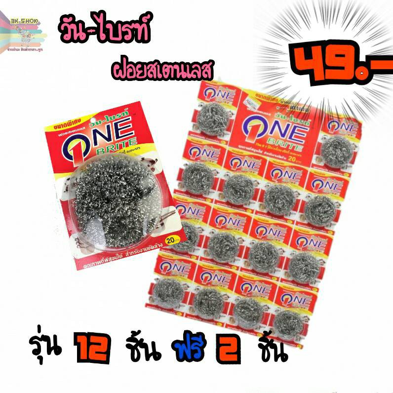 วัน-ไบรท์ฝอยสเตนเลส100% ฝอยขัดหม้อ ฝอยแสตนเลส 12แถม2ชิ้น(1แผง)