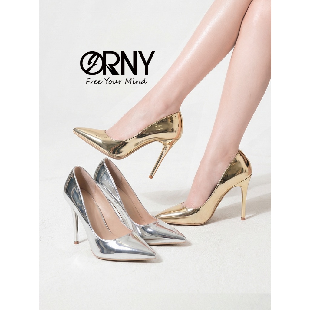 🇹🇭 ส่งจาก กทม. 🇹🇭 รองเท้าส้นสูง ส้นเข็ม หัวแหลม หนังเมทัลลิค (สีเงิน/สีทอง) งานแต่ง ออกงาน 4080