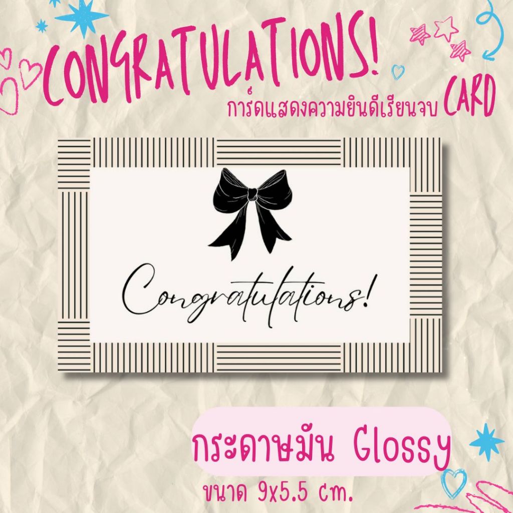 [10 แผ่น /15บาท] การ์ด congratulations การ์ดเเสดงความยินดี เรียนจบ ปัจฉิม รุ่นโบว์