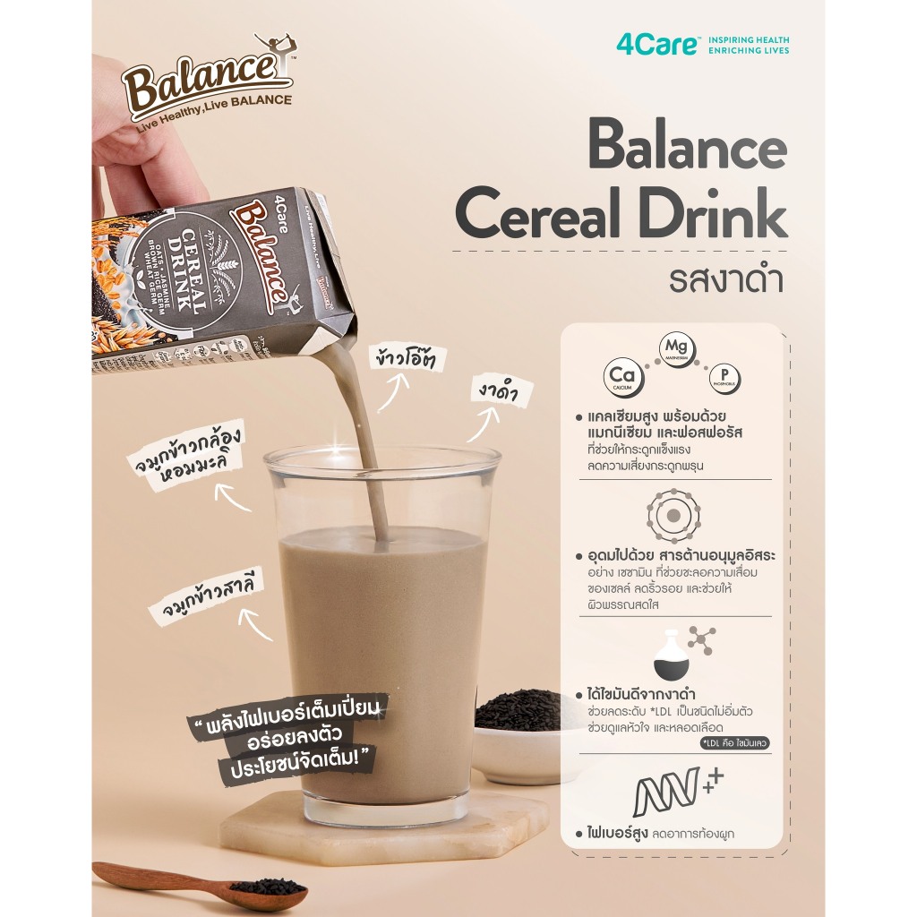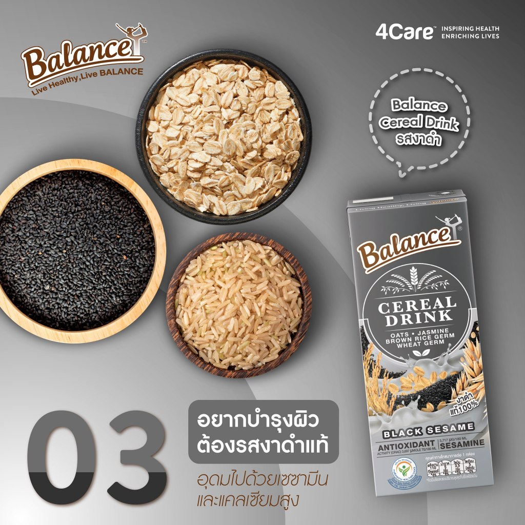 [3 กล่อง] Balance ซีเรียลดริ๊งค์ นมธัญพืช รสงาดำแท้ ขนาด 180 ml. น้ำตาลน้อย ไฟเบอร์สูง