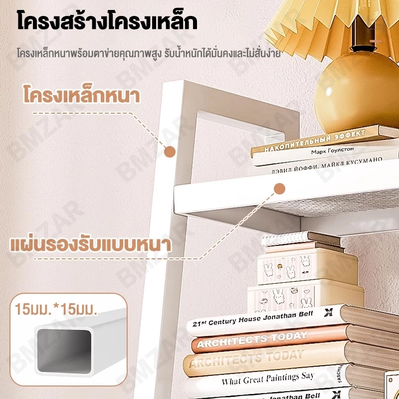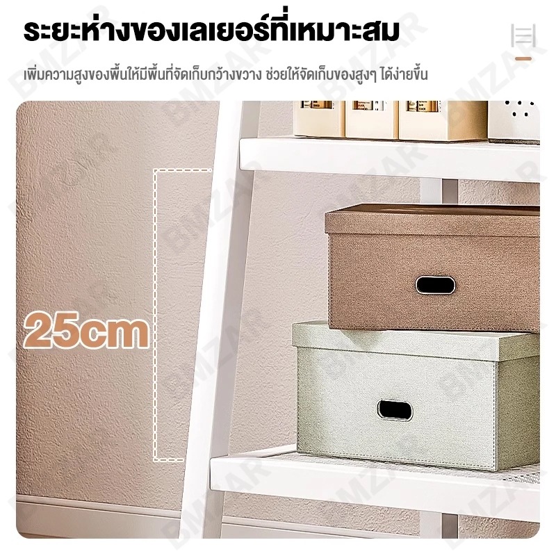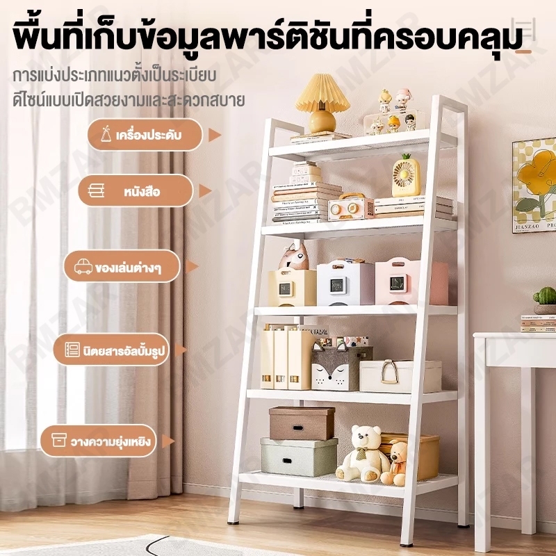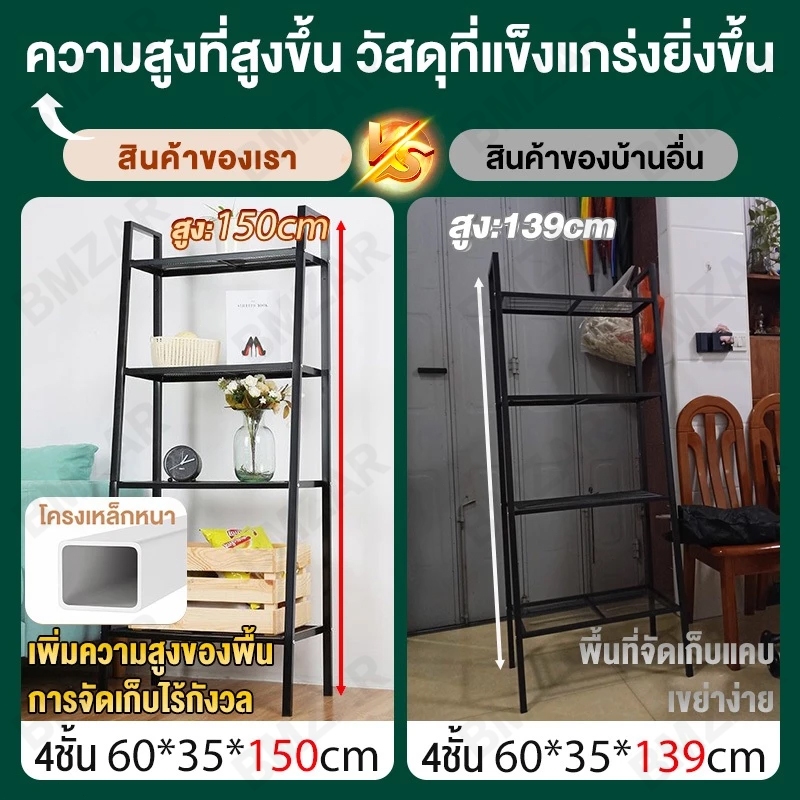 BMZAR ชั้นวางของ 150cm 3/4/5 ชั้น ชั้นอเนกประสงค์น ทรงสี่เหลี่ยมคางหมูรับน้ำหนักได้ 150kg และดำ
