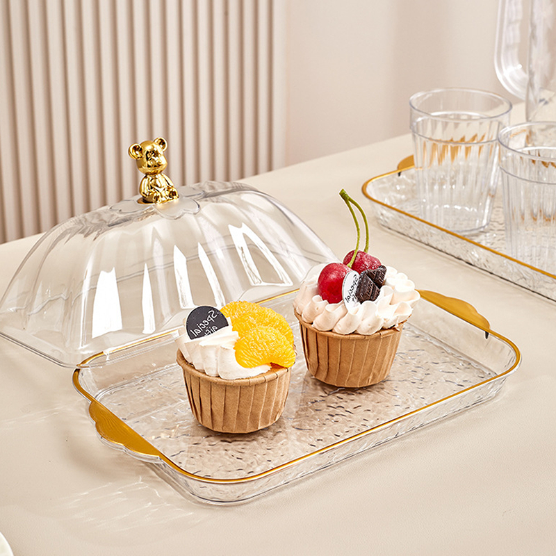 HOPTECH ถาดอาหารหรูหรา ถาดขนาดใส มีหูจับ อเนกประสงค์ มีฝาครอบ สําหรับ งานครัว งานเลี้ยง สังสรรค์