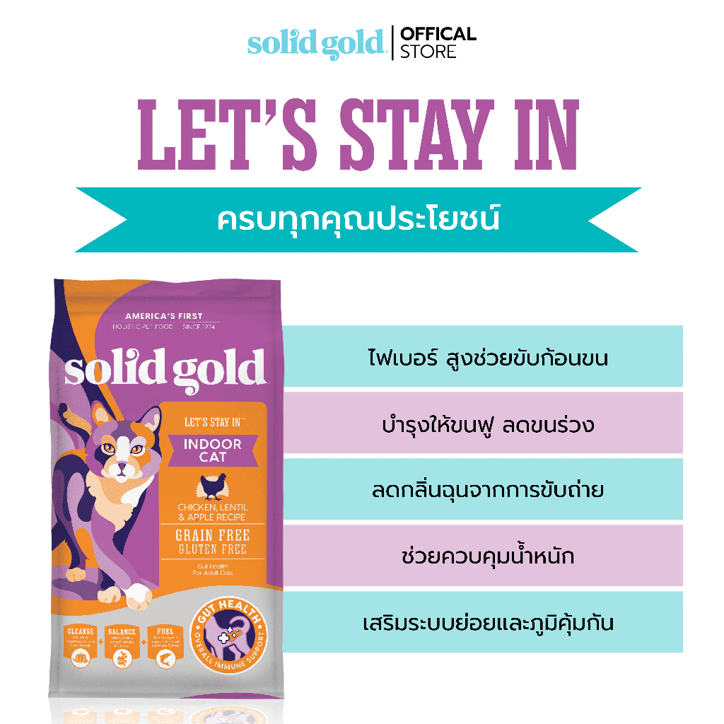 Solid Gold อาหารแมวโฮลิสติกสูตร Let's Stay In รสเนื้อไก่ ช่วยขับก้อนขน ขนาด 5.44 kg.