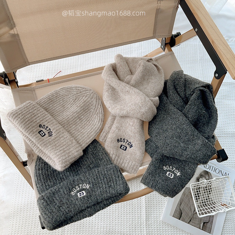 พร้อมส่ง🔥เซตหมวกไหมพรม+ผ้าพันคอไหมพรมผสมวูลจากขนสัตว์แท้ ปักBoston ผ้านุ่ม อุ่น เด็ก2-8ปี👧🏻👦🏻