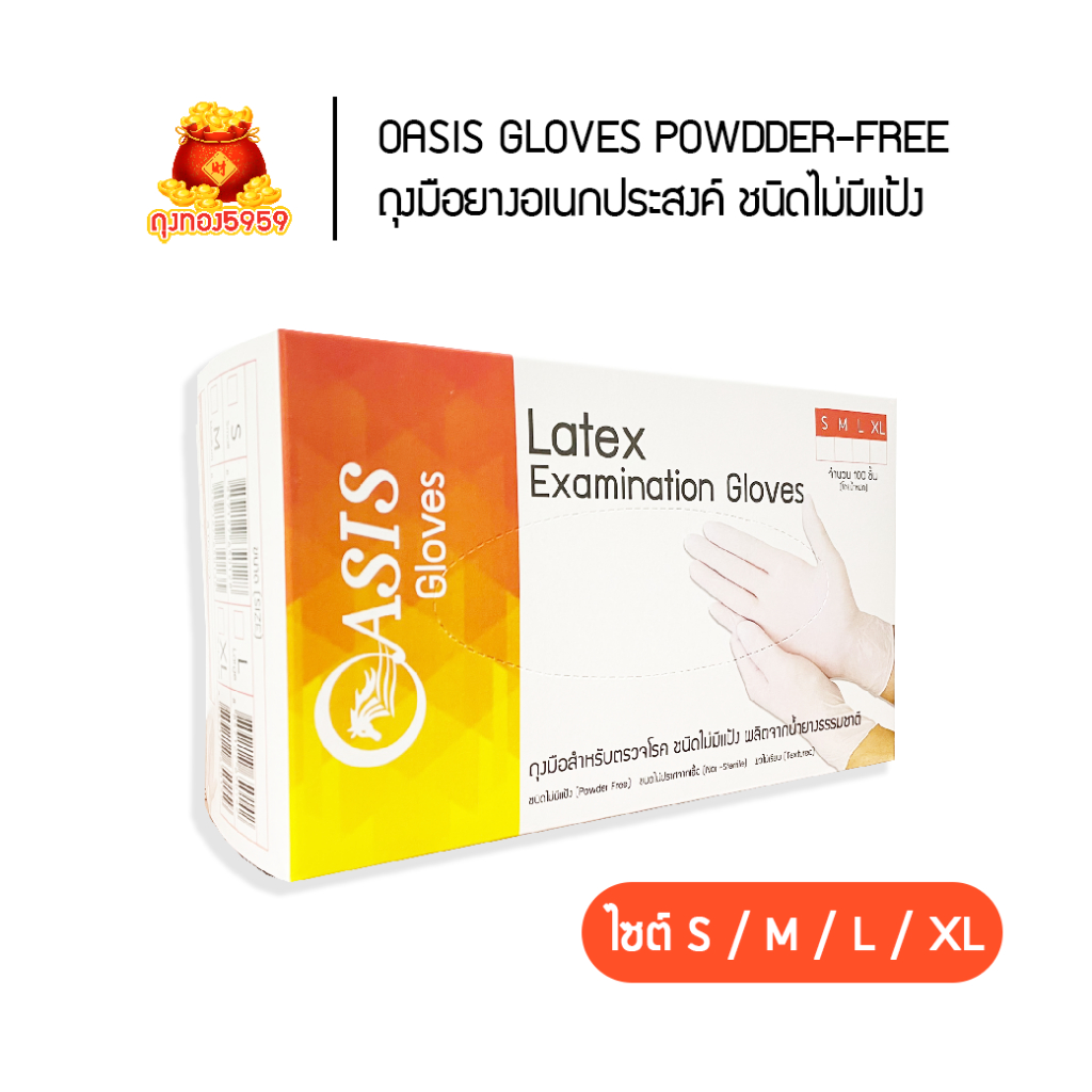 ยกลัง 10 กล่องต่อลัง Oasis Latex Powder-free ถุงมือยางลาเท็กซ์ ชนิดไม่มีแป้ง ถุงมือยางอเนกประสงค์ ใช้ทั่วไป