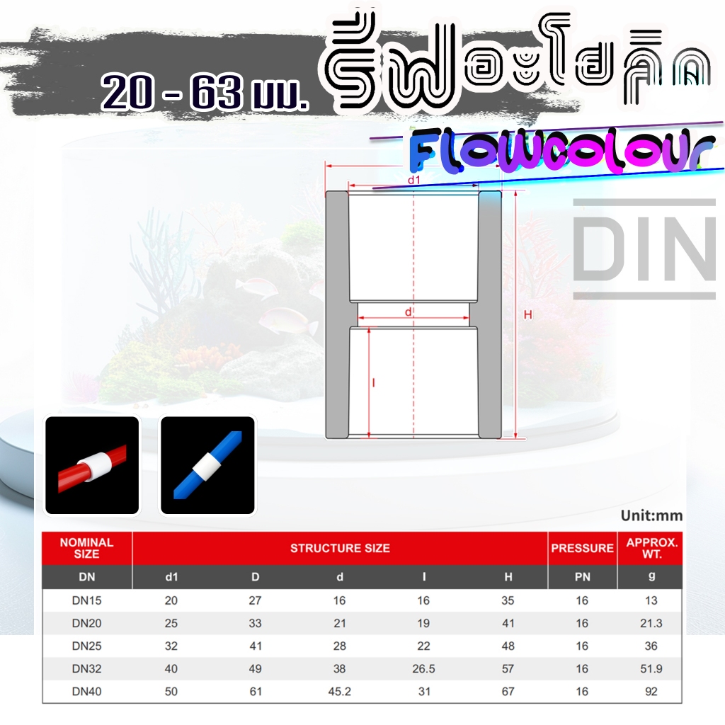 Reef-aholic สามทาง/ ฝาครอบ / และต่อตรง สีขาว มาตรฐาน DIN นะคับ เนื้อตัวดี U-PVC จาก Flowcolour