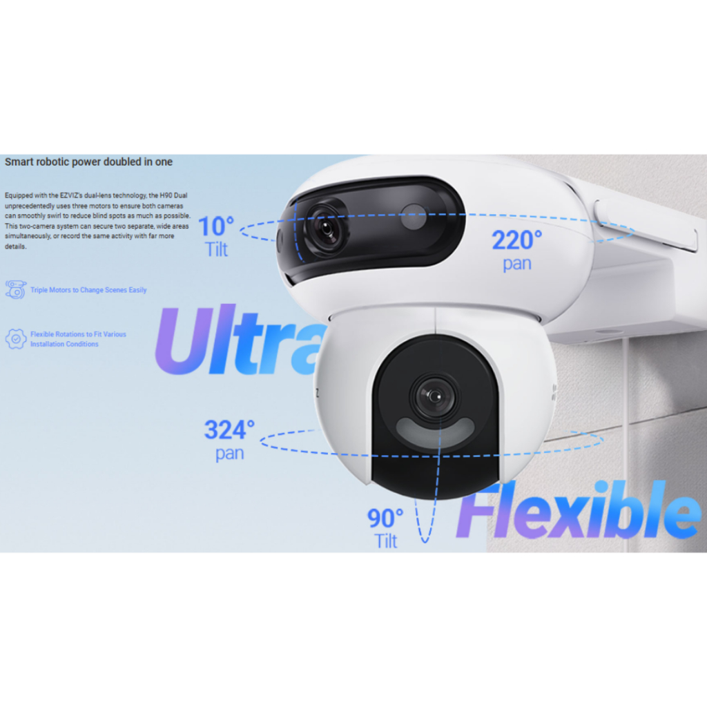 Ezviz H90 Dual 2K+ & 2K+ Dual Lenses การหมุนแบบคู่เพื่อการมองเห็นที่ยืดหยุ่นเป็นพิเศษ การป้องกันเชิงรุกด้วยไซเรนและไฟแฟล