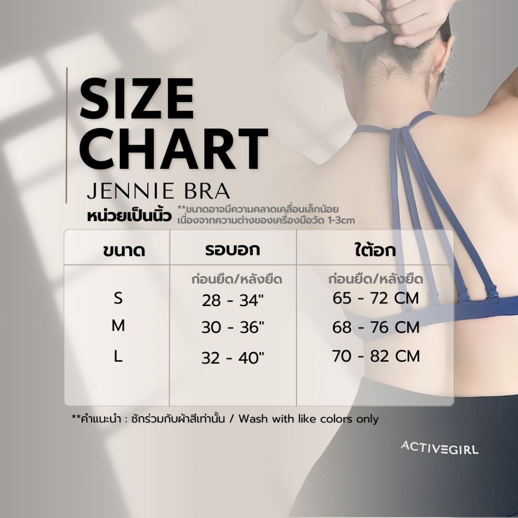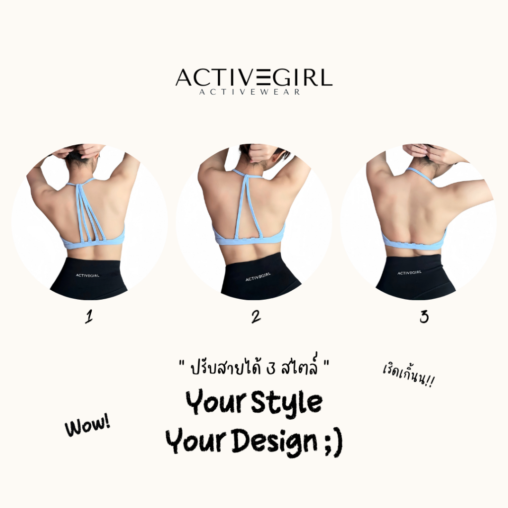 Activegirl - สปอร์ตบรา รุ่น Jennie Bra เนื้อผ้าหนานุ่ม Light Support สายปรับได้ 3 สไตล์ มีฟองน้ำ