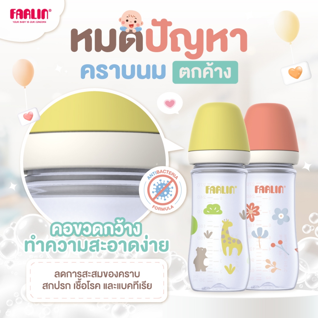 (มีมอก.)ขวดนมแบบPP Farlin(ปลอดสารทำลายพัฒนาการเด็กทุกชนิด)จุกนมตามงานวิจัย เกรดโรงพยาบาลไต้หวันแนะนำ