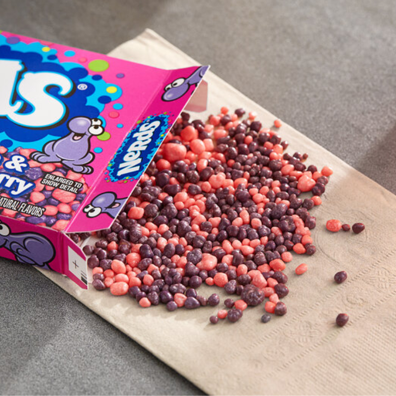 เนิร์ดส์ แทงกี้ ครันชี่ ขนมเม็ดจิ๋ว รสองุ่นและสตอเบอร์รี่ 46.7 กรัม - Nerds Tangy Crunchy Grape & Strawberry Candy 46.7g