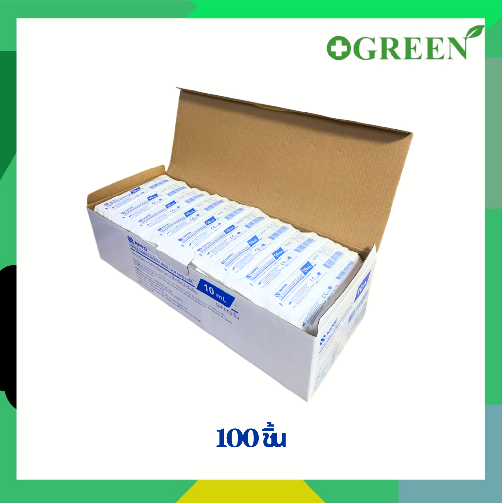 งานจีน NIPRO SYRINGE ขนาด 10 mL กระบอกฉีดยาพลาสติก ไซริงค์พลาสติก100 ชิ้น/กล่อง [5699] กล่องยาว