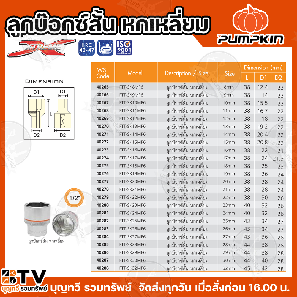 PUMPKIN ลูกบ๊อกซ์สั้น XTREME หกเหลี่ยม ,มีให้เลือกหลากหลายขนาด 8 mm - 32 mm ลูกบล็อก / ลูกบล็อค / ลูกบ๊อกซ์ ของแท้
