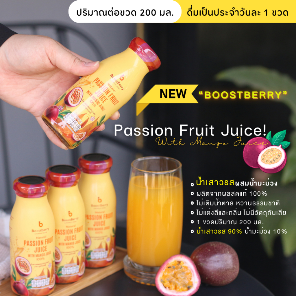 6 ขวด น้ำเสาวรสแท้ผสมน้ำมะม่วง ตราบูสท์เบอร์รี่ --- "BoostBerry" Passion Fruit with Mango Juice