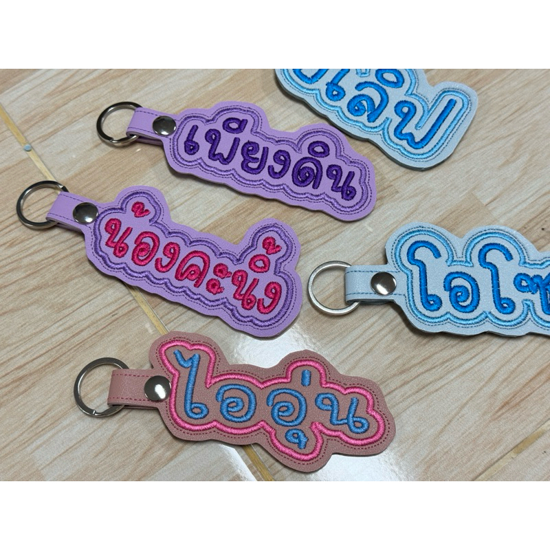 พวงกุญแจหนัง ปักชื่อ (เลือกสีหนัง แจ้งสีด้ายในแชทนะคะ)