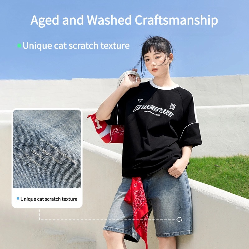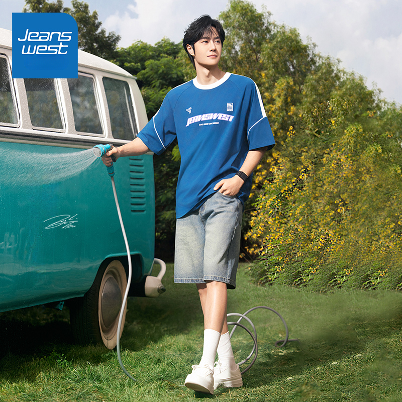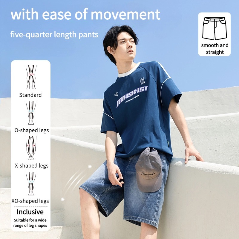Jeanswest Wang Yibo กางเกงขาสั้นเดียวกัน 2025รุ่นล่าสุด กางเกงขาสั้นเทรนด์ unisexย้อนยุครุ่นลิมิเต็ด