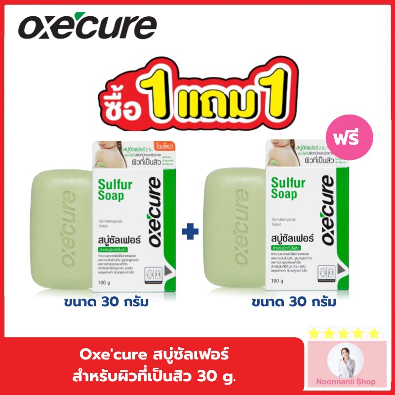 1แถม1 Exp.09/27 Oxecure สบู่ก้อน สำหรับผิวหน้า และผิวกาย ที่มีปัญหาสิว Sulfur Soap 30g และ 100 g