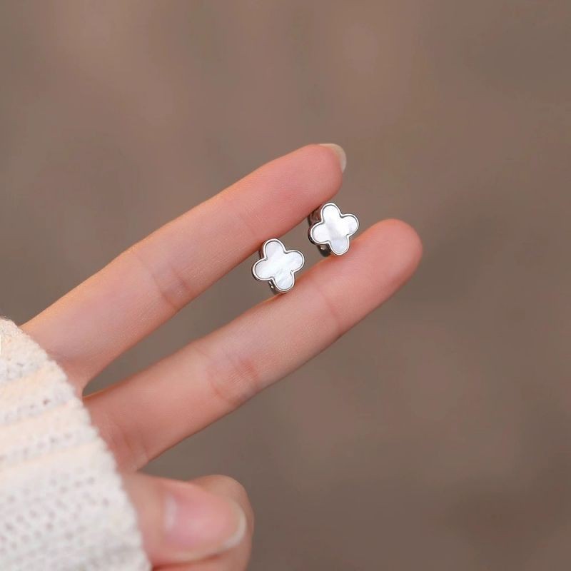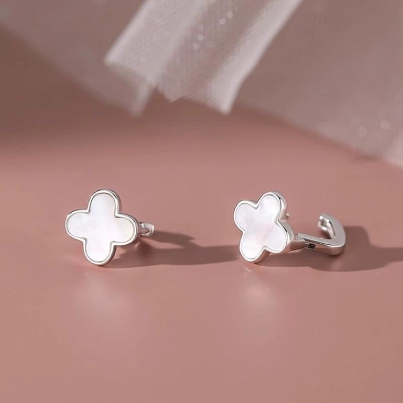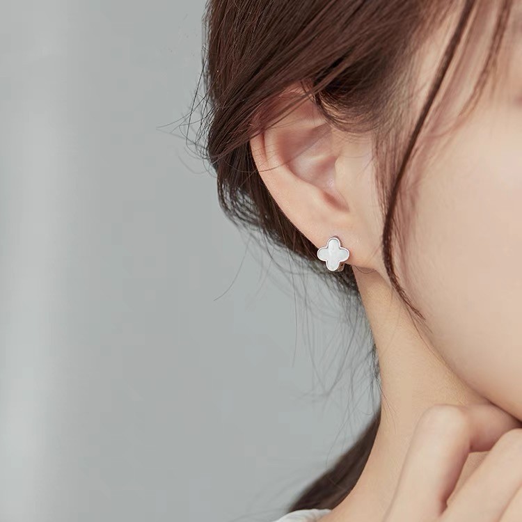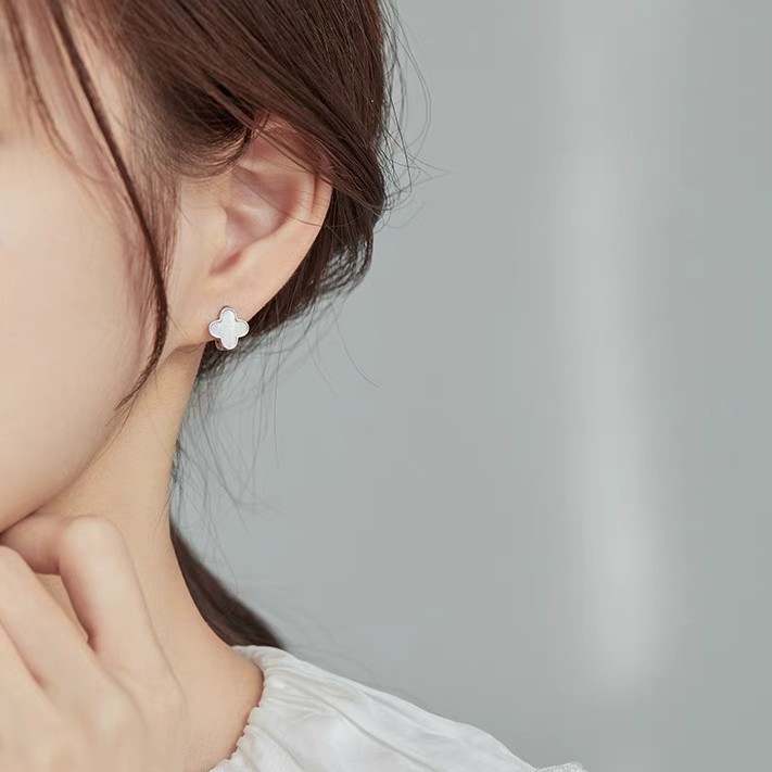 ต่างหูโคลเวอร์สี่ใบ Fritillaria สีขาว ต่างหูสุภาพสตรี