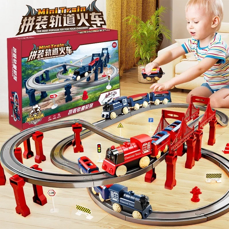 JOYTOYS ของเล่นรถชุดก่อสร้าง รางการแข่งขันก่อสร้างสำหรับเด็กที่มีความยืดหยุ่นไฟฟ้าติดตามรถของเล่นชุดของขวัญประกอบ diy