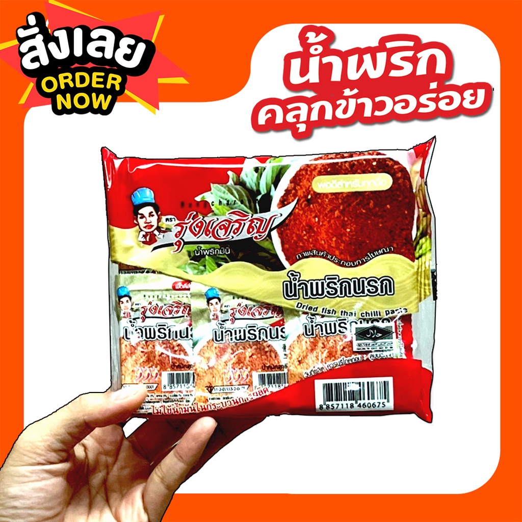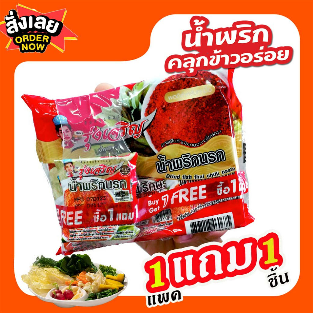 น้ำพริกนรก ตรารุ่งเจริญ ชนิดแพค 6 ถ้วยมินิ จำนวน 1 แพค ฟรี 1 ถ้วยมินิ
