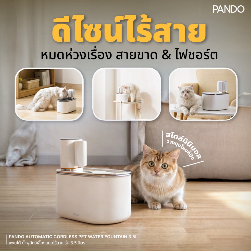 [สินค้าใหม่] Rabbit Selection Pet PANDO Automatic Cordless Pet Water Fountain 3.5L น้ำพุสัตว์เลี้ยงแบบไร้สาย รุ่น 3.5L