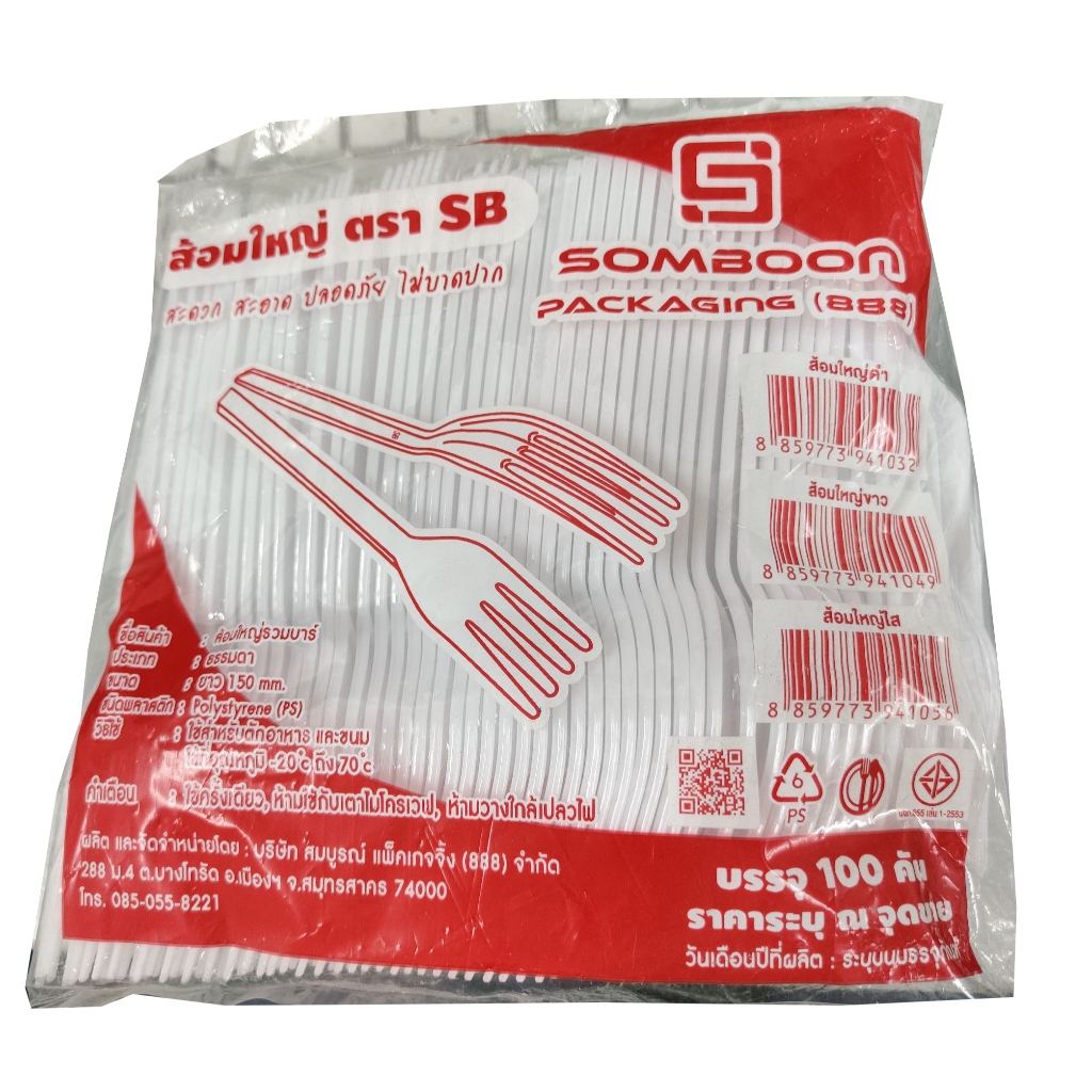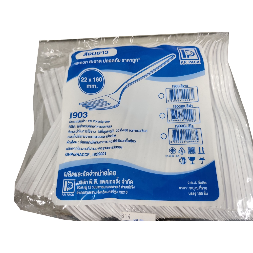 ช้อน,ส้อมพลาสติกยาว สีดำ,ขาว*(100คัน/แพ็ค)