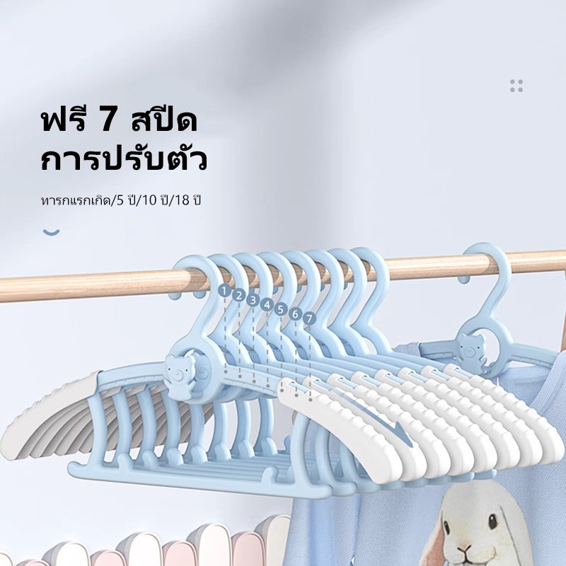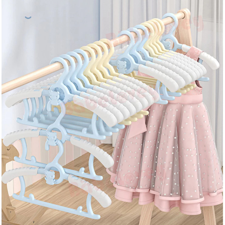 50PCS ไม้แขวนเสื้อ สำหรับเด็ก เซ็ท ไม้แขวนเสื้อผ้า ไม้แขวนผ้า คละสี ลื่นปรับความกว้างได้วางซ้อนกันได