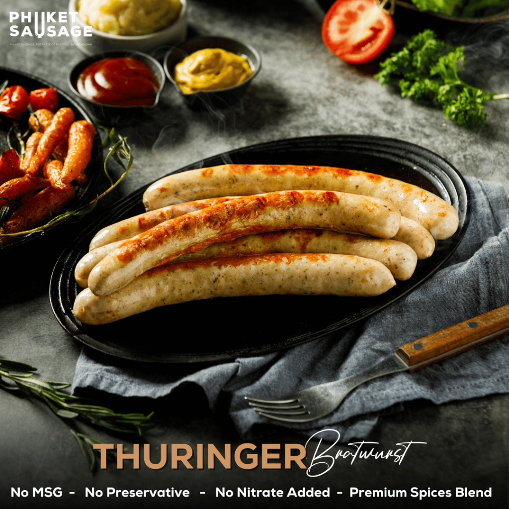 ไส้กรอกทูริงเจอร์ บราทเวิสท์ Thüringer Bratwurst จาก Phuket Sausage 500g. 6ชิ้น/1แพ็ค
