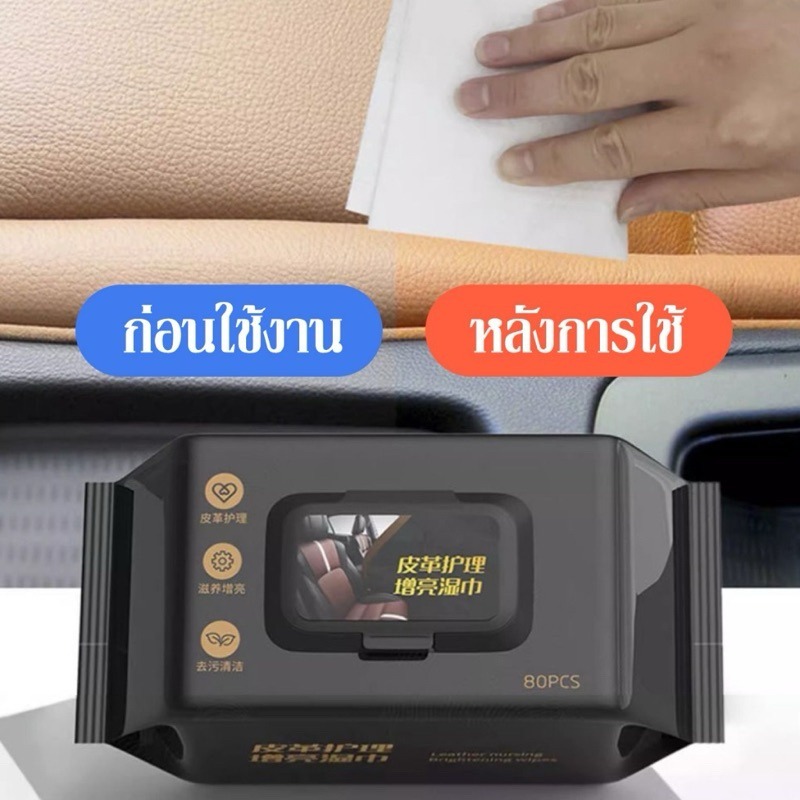 ทิชชู่เช็ดเบาะหนังรถยนต์ คอนโซลรถ ผ้าเช็ดเบาะรถ 80แผ่น ไม่เหม็น ไม่เหนียว ขจัดสิ่งสกปรก ทิชชูเปียกเช็ด