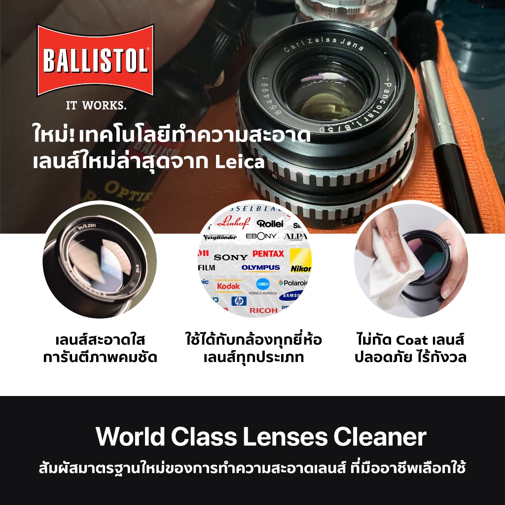 Leica น้ำยาเช็ดเลนส์ Leica x Ballistol จากเยอรมัน 2 ขวด (60 ml.) ของแท้ อันดับ 1 ไม่กัด Coat เลนส์ การันตีความใส คมชัด