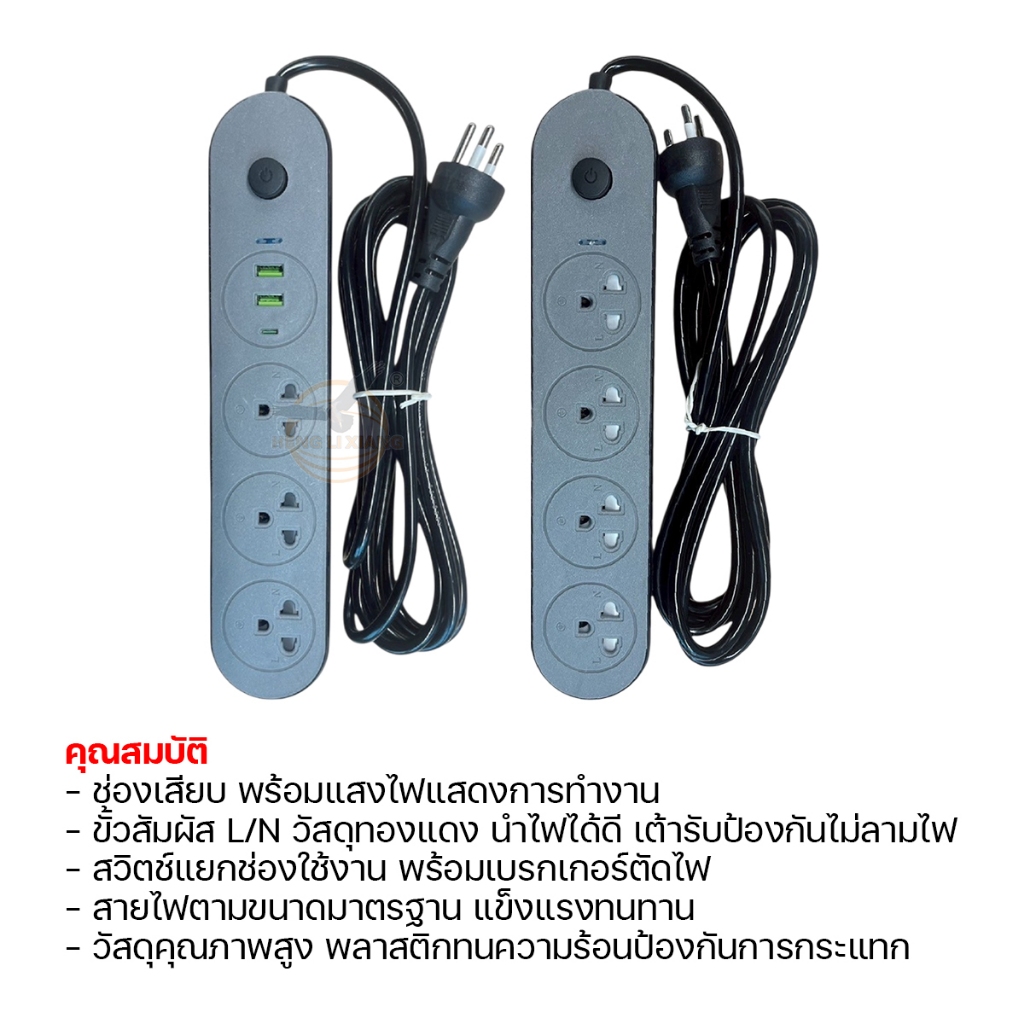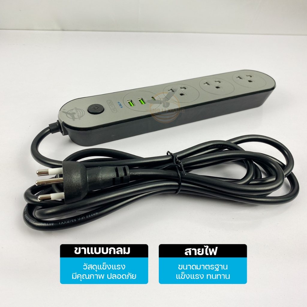 ของแท้!!! ปลั๊กไฟ ปลั๊กพ่วง 3เมตร/5เมตร ปลั๊ก3ขา มีสายดิน มีเบรกเกอร์ตัดไฟอัตโนมัติ ผ่านมาตรฐาน มอก.