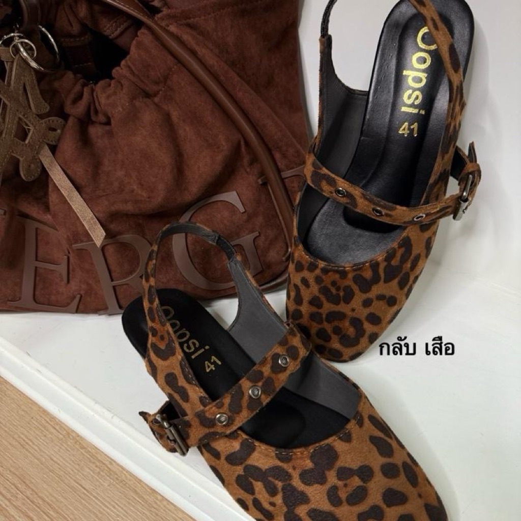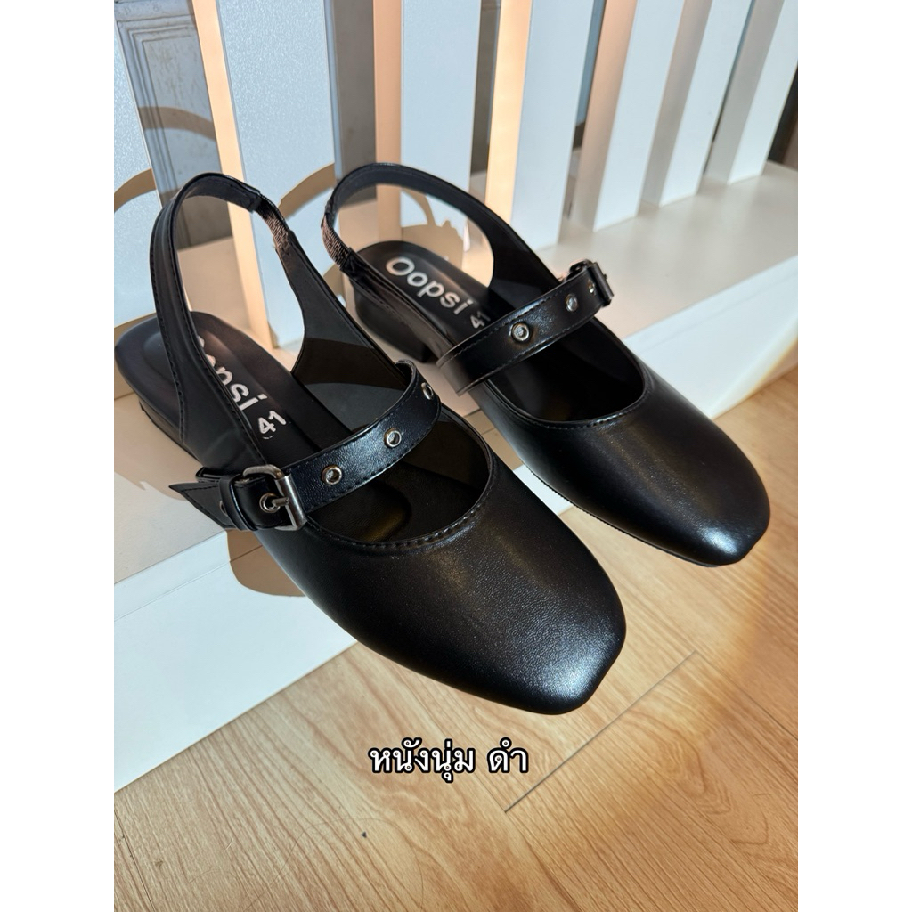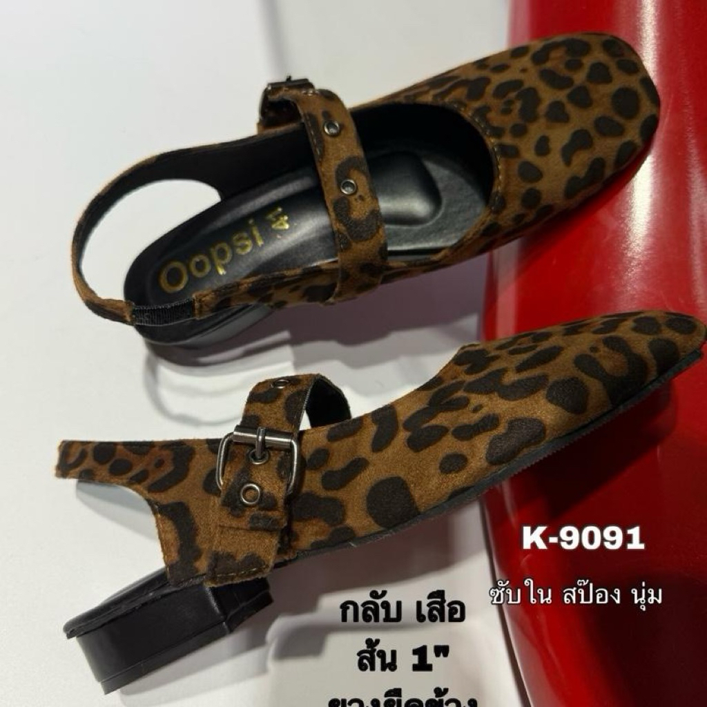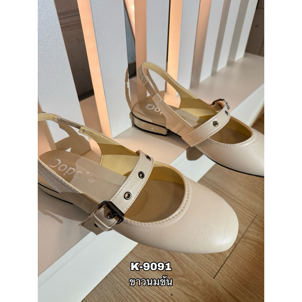 รองเท้าแมรี่เจน ส้นสูง1นิ้ว หนังกลับมียางยืด รุ่นK-9091(ไซส์36-45)