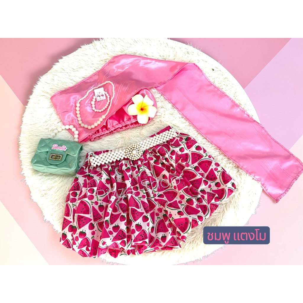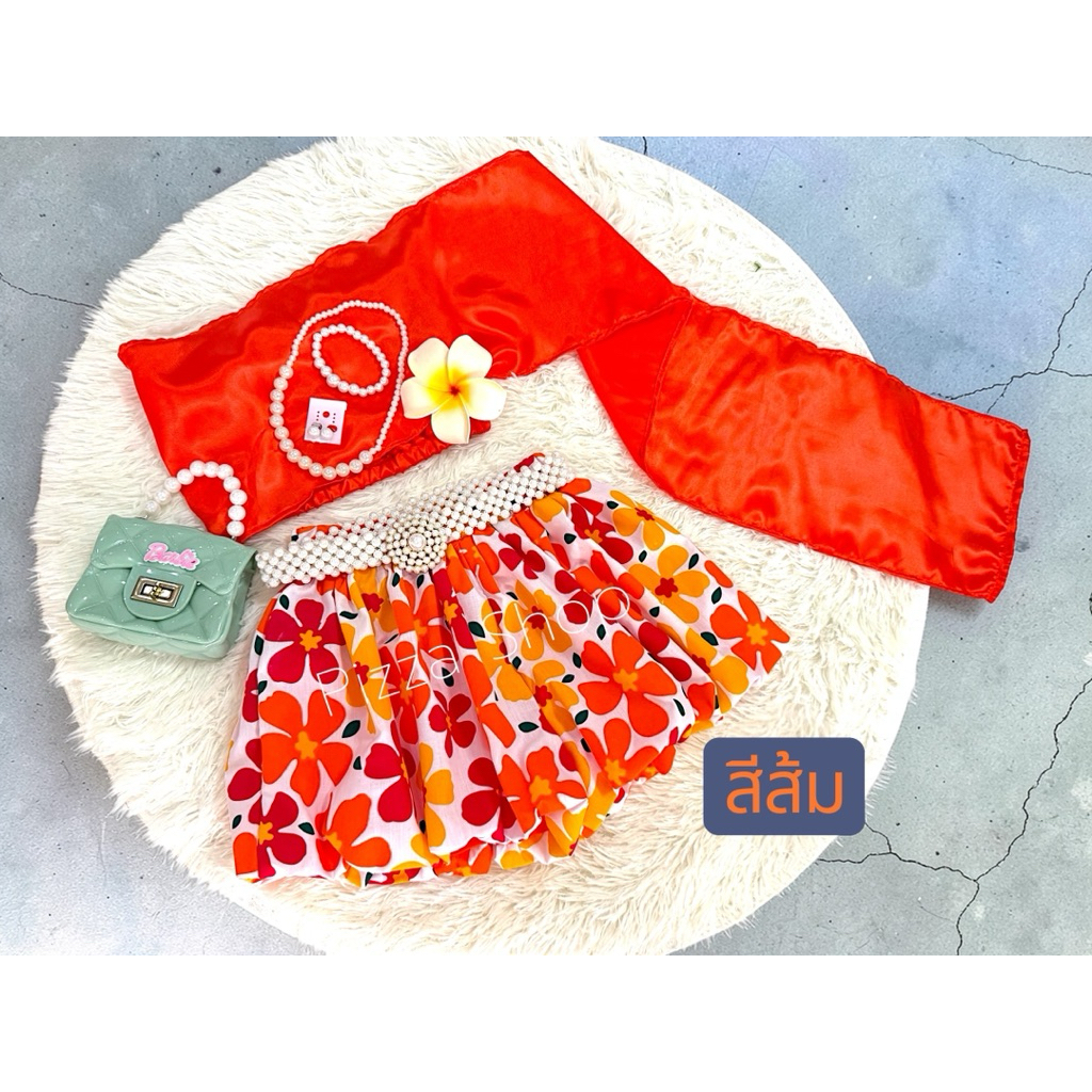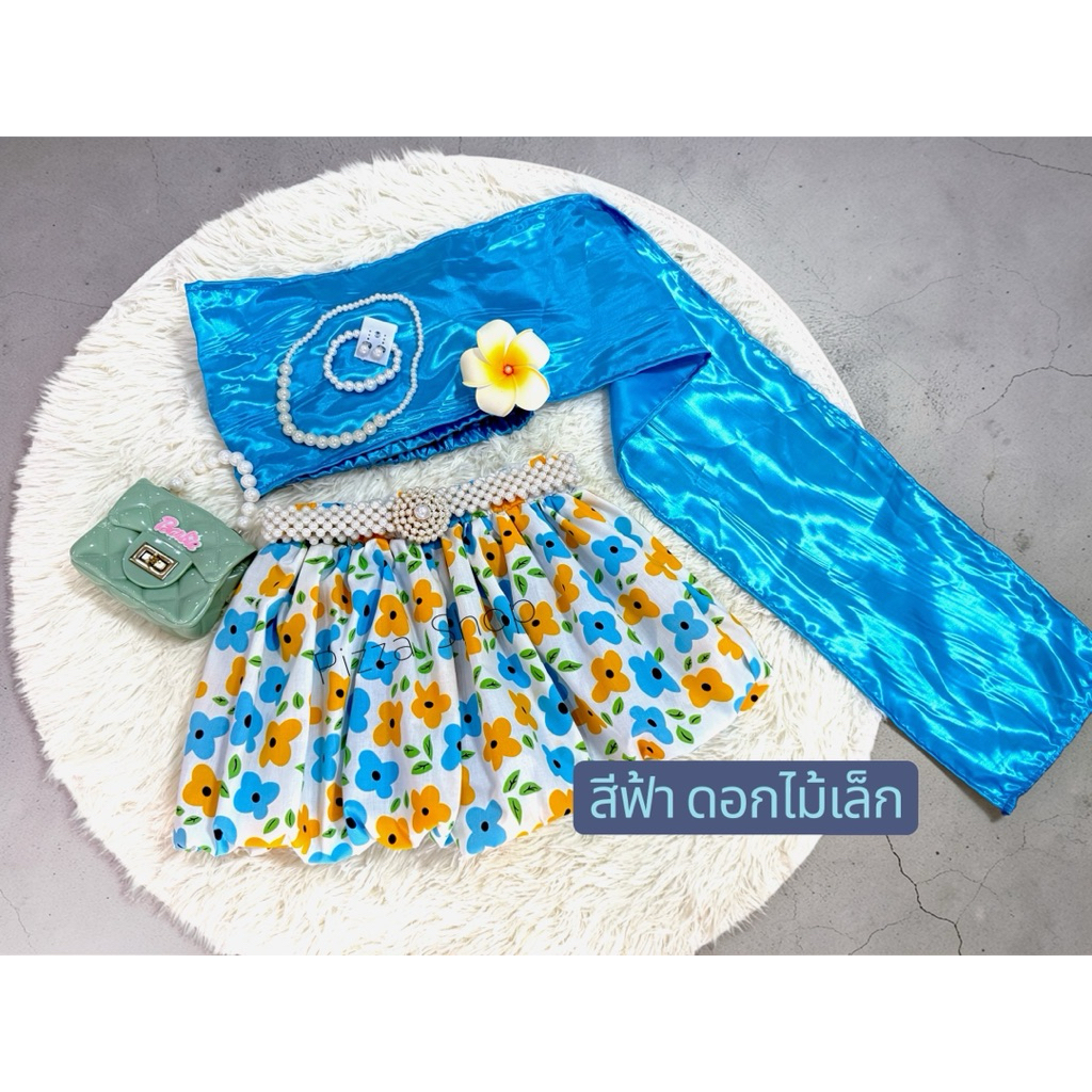 ชุดสไบสำเร็จรูปเด็ก+กางเกงบอลลูนลวดลายน่ารักสีสันสดใส แถมเครื่องประดับ (ยกเว้นเข็มขัด)