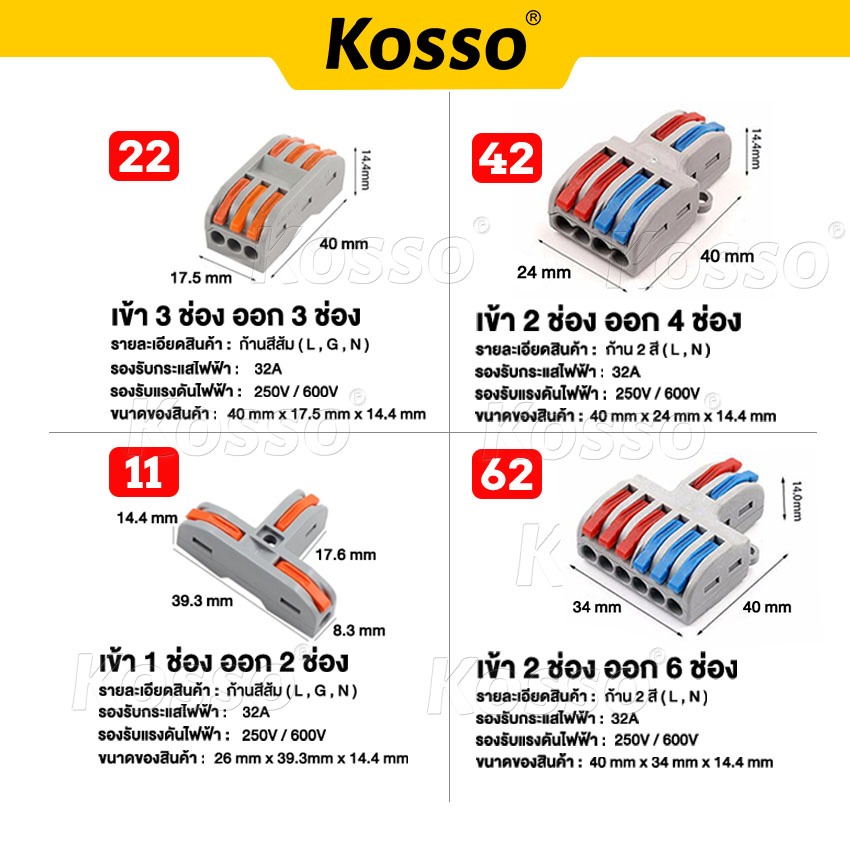ส่งด่วน Kosso ข้อต่อสายไฟ ใช้เชื่อมต่อสายไฟ มาตรฐานโรงงาน Connector