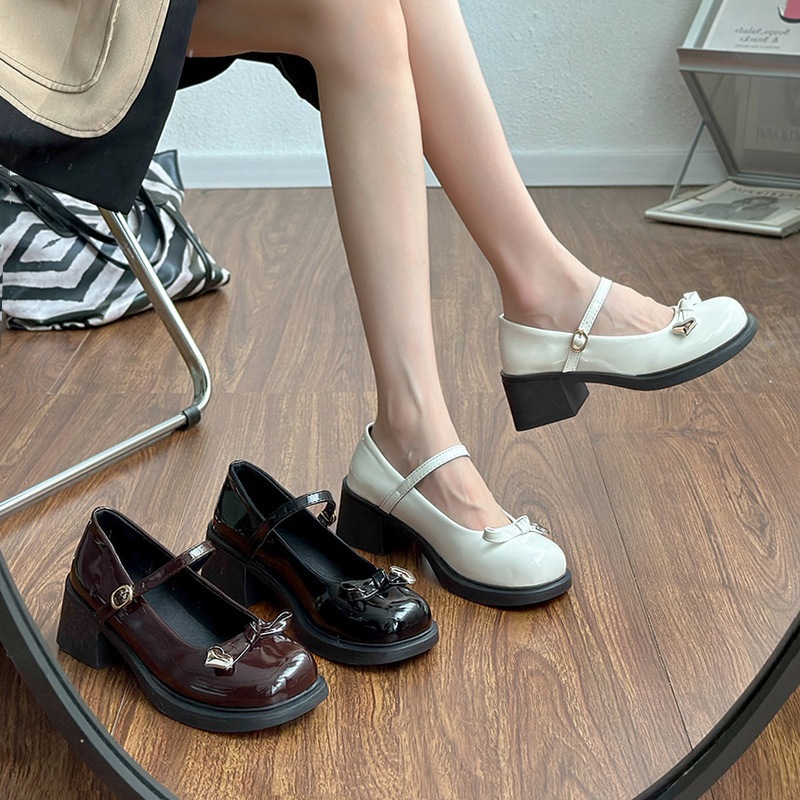 รองเท้าแมรี่เจนมีสไตล์ รองเท้าหนังส้นหนาของผู้หญิง หัวกลม สไตล์วิทยาลัยเจเคญี่ปุ่น