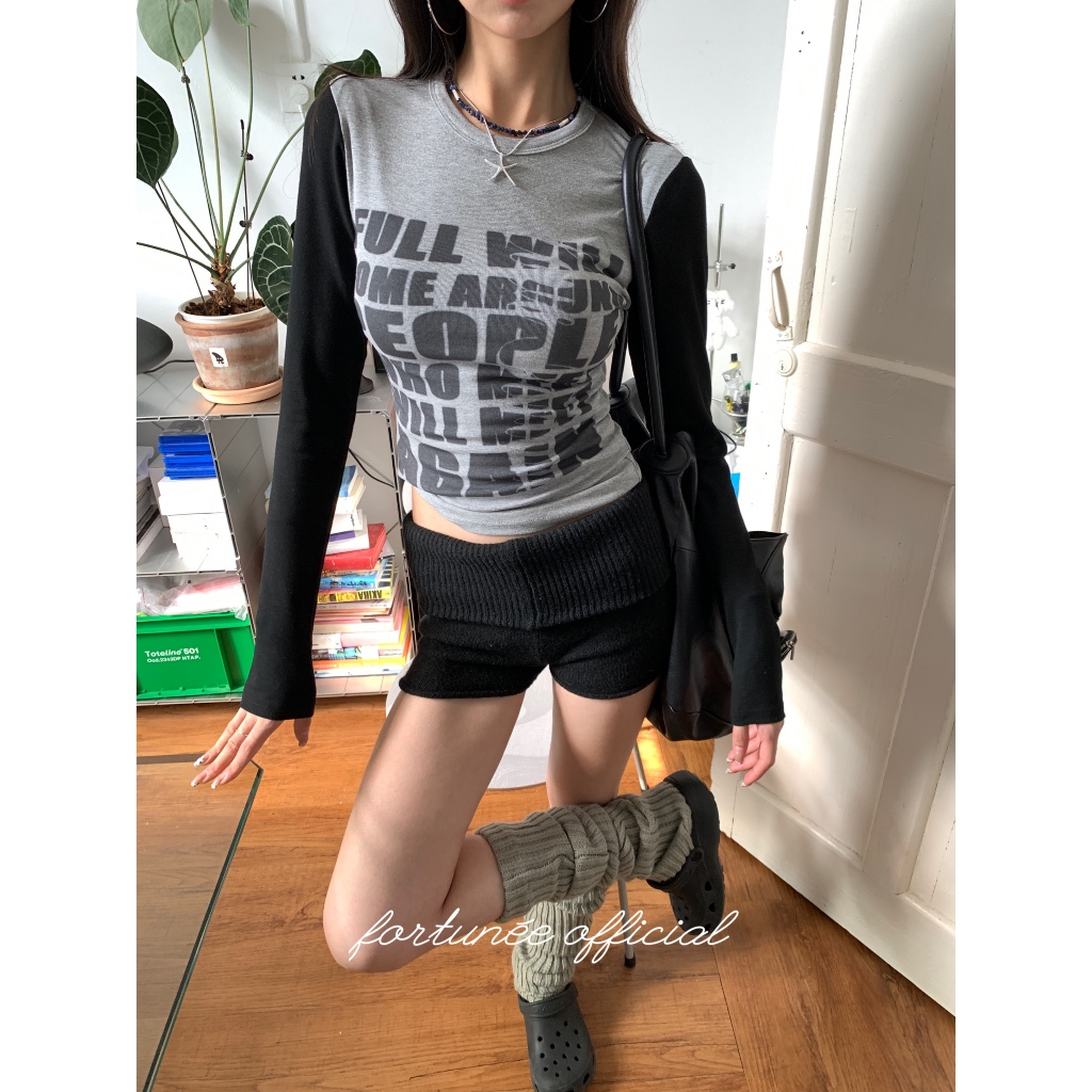 ❣Fortunee ❣กางเกงขาสั้นถักเอวต่ำ สไตล์ฤดูหนาวสไตล์เซ็กซี่ กางเกงขาสั้นแนบสะโพก ดูผอมและยืดหยุ่น😍💕