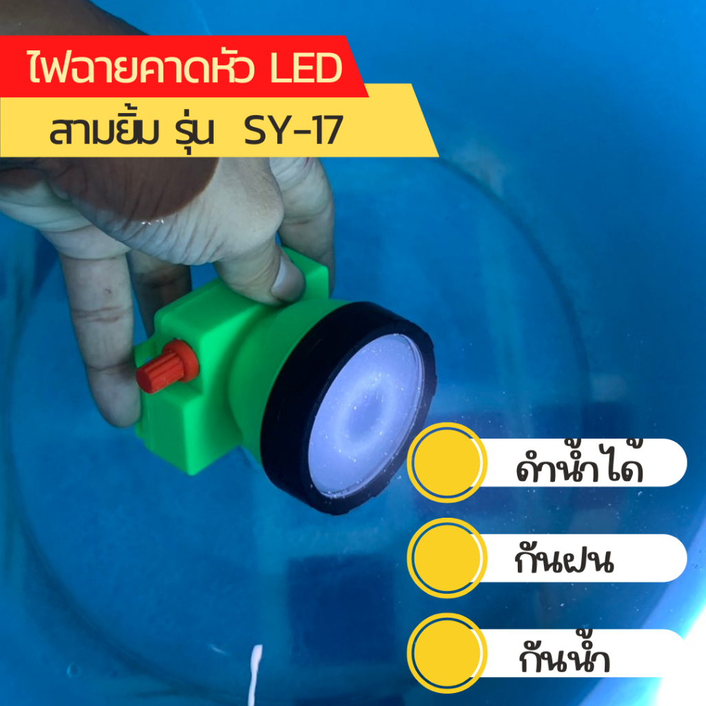 ไฟฉายคาดหน้าผาก ตราสามยิ้ม LED SY-17 ไฟกรีดยาง ไฟส่องสัตว์ ไฟดำน้ำ ไฟฉาย รับประกันของแท้