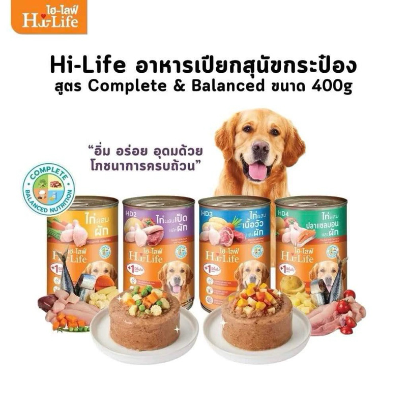 (12กระป๋อง) Hi-Life ไฮไลฟ์ อาหารเปียกสุนัขกระป๋อง สำหรับสุนัขโต สูตร Complete & Balanced ขนาด 400 กรัม