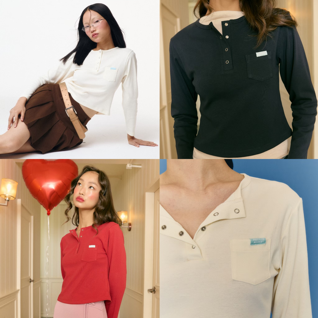 [แจกโค้ดลด75฿ พิมพ์ INC210BNV ] The Freckled Market - Belle Button Longsleeves เสื้อแขน3ส่วน กระดุมแป้ก